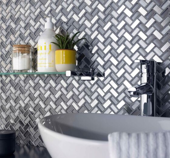 Dusk Grey Herringbone Glass & Mirror Mosaic 15x30mm
