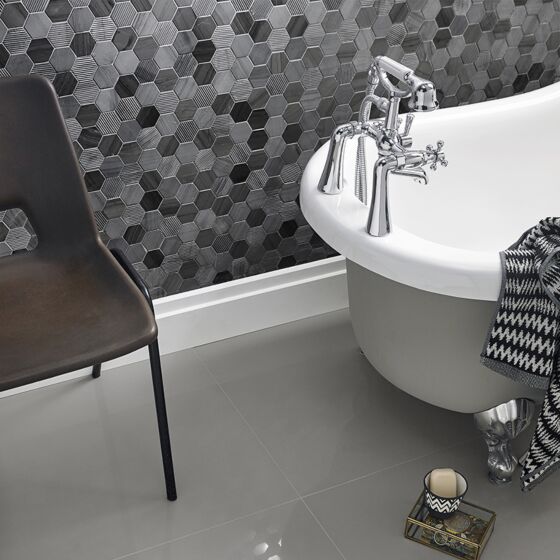 Midnight Stone Hexagon Mixed Finish Marble Mosaic 48x48mm
