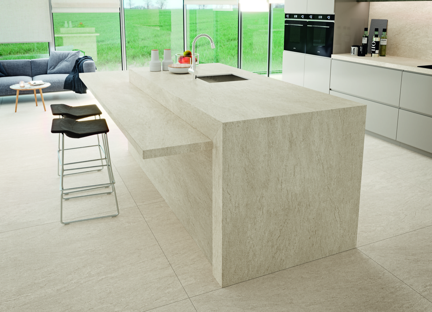 Coverlam’s largest tile is 1200x3600mm format can be used to cover large surfaces, guaranteeing all the mechanical properties and visual appeal that set porcelain tiles apart.
