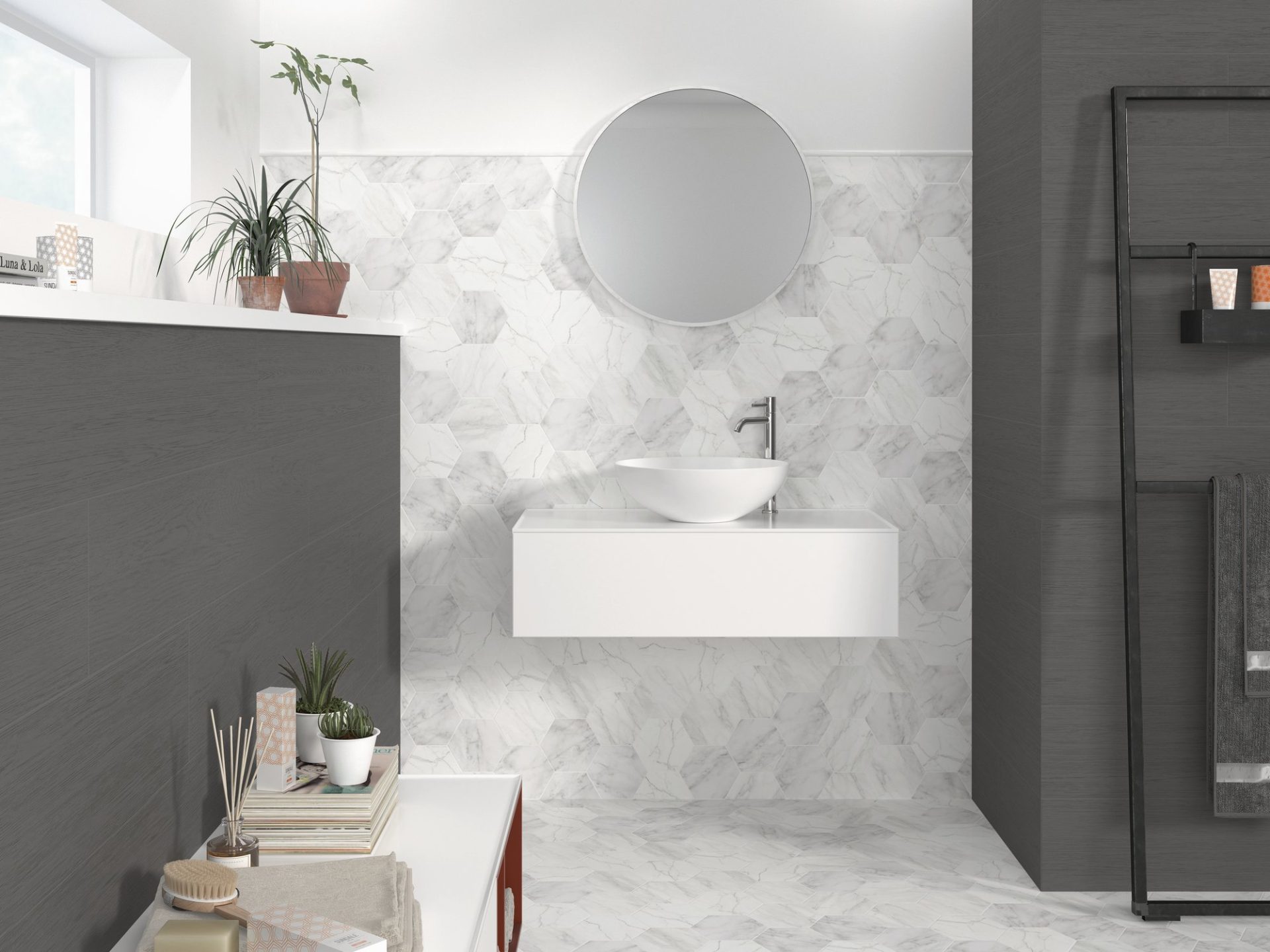 The Eternal Hexagonal Wall and Floor Tile Collection introduces a refined blend of geometry and style, featuring distinctive shapes like hexagons, rhombuses, and octagons, all harmonised with a neutral colour palette. This series presents a modern approach with a nod to classical beauty, enriched with special pieces that complete the look for kitchens and bathrooms.