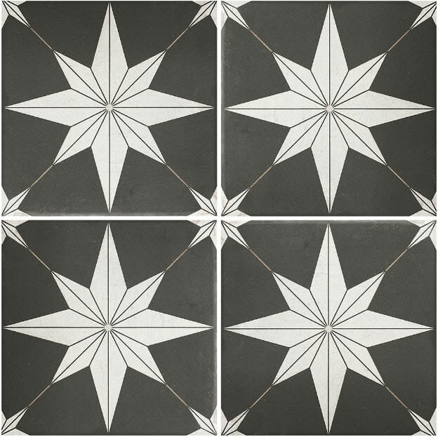 San Marco Star Design is a stunning 20 x 20 cm patterned porcelain tile for walls and floors, with a unique character. Slightly distressed, the tile has the feel of a reclaimed floor with wear gained over years of use.