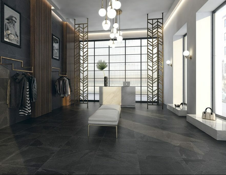 Slate Series floor tiles in three colours for today’s trends, has a real feel of slate. Textured but not gritty, the surface has an anti-slip R10 rating for its ramp test but achieves a high rated +36 on the UK pendulum test, which makes it commercially ant-slip. Slate Series can be used inside or outside and creates a modern look from the most traditional of flooring used in the UK. A great product with variation in pattern to complete the Natural look and all from only £33.99 per m2